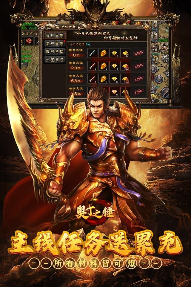 《奥丁之锤》是一款以传奇为题材的角色扮演手游。上线免费送【全屏捡物】【自动回收】【智能挂机】。纯散人服,人气大服,100%做到人人平等!挂机一整年,背包都不会满,真正做到为玩家考虑,让你畅玩无顾虑!游戏内置三折充值代币,代币可购买一切!