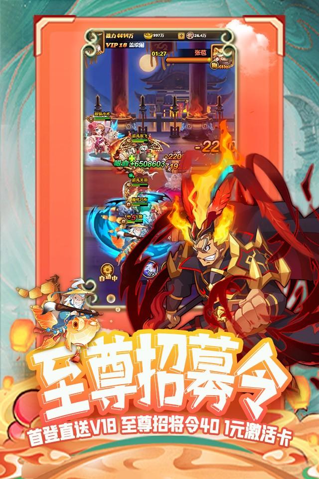 《颤抖吧三国(0.1折通天霸者)H5》是一款三国挂机SLG融合了多种玩法的游戏。如SLG的攻城掠地,放置类的升级,BOSS挑战,跨服国战及休闲社交的偷菜,抢矿等玩法。核心系统有着良好的深度玩法和武将付费系统。游戏美术以Q版三国为主,角色形象Q萌有趣,技能特效显眼风趣,交互精良、简洁合理。
