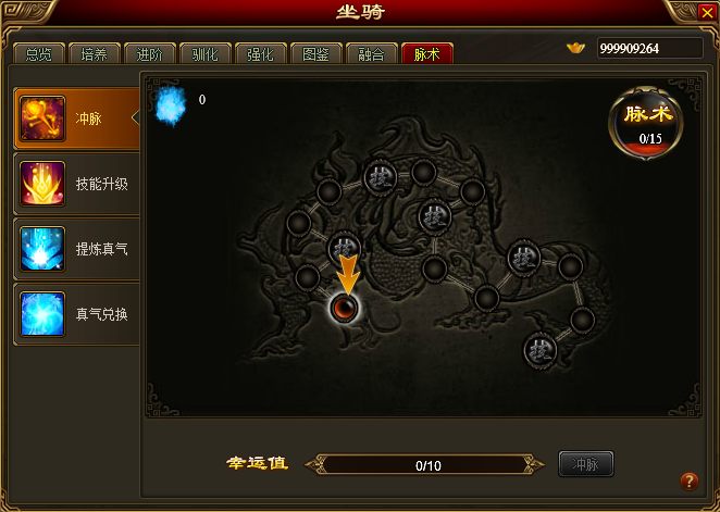 2.功能位置:坐骑-脉术标签页