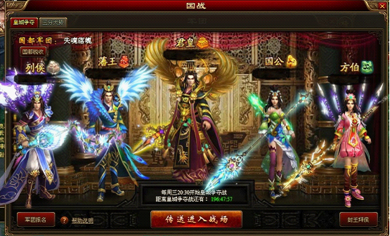 各国内部军团可参与皇城争夺战,最后胜利军团可以占领国都,并可以每天获得税收。