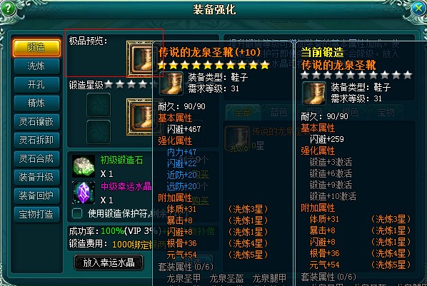 极品预览 将要锻造的装备点进锻造栏,鼠标移动到极品预览中,可以查看该装备的10星属性