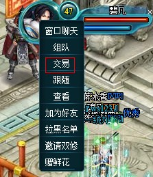 直接点击交易方玩家,选择“交易”,发送交易请求。