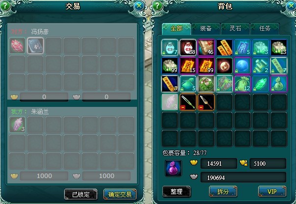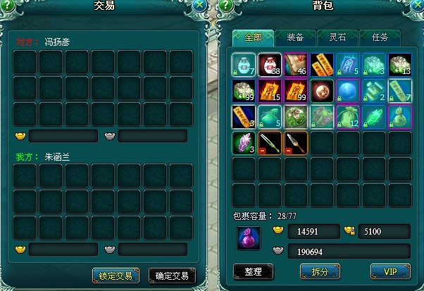 交易流程中,双方将需要交易的物品分别拖动到交易框内,然后点击锁定,再点击确定,交易才真正成功。在最终确认前,点击取消交易,都会将交易过程取消。当一方锁定交易时,对方将交易物品取消或者改动,锁定状态会自动解除。