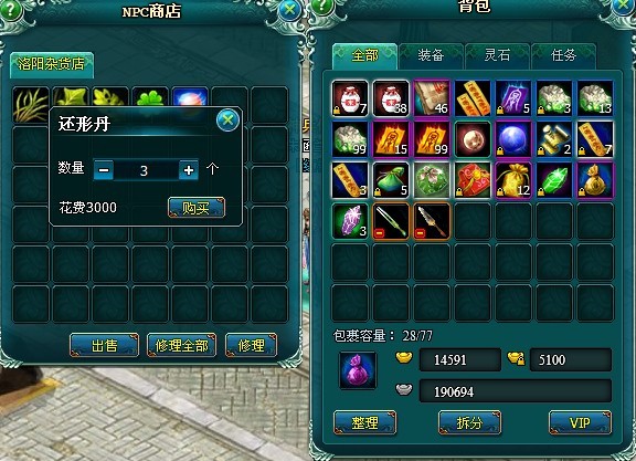每个城市可以进行买卖的NPC处,可以选择购买各种物品道具和出售你不要的物品。