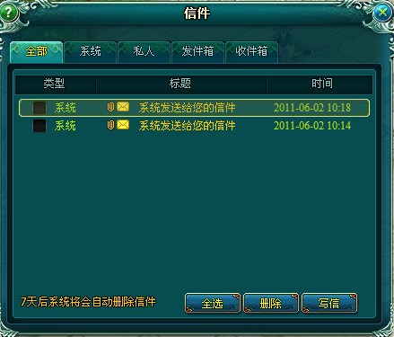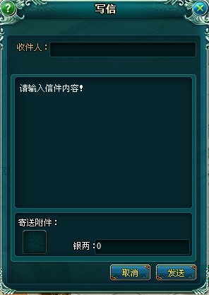 发邮件:点击下面中间的“写信件”弹出写信框,填写好收件人,信件内容以及银两或者物品,点击发送就可以邮寄信件了。