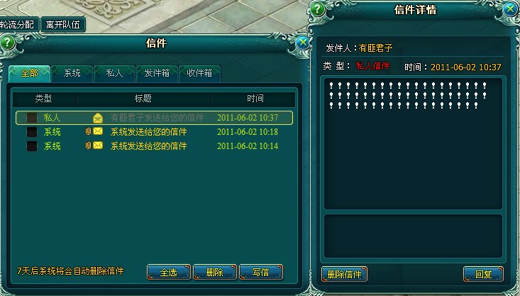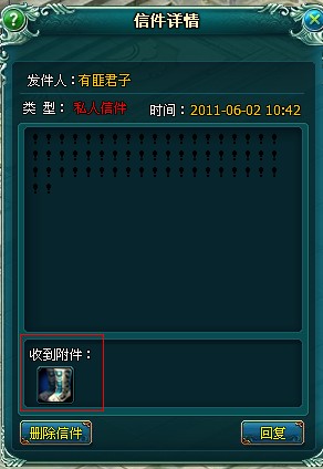 点击邮件中的物品就可以收到邮件寄过来的物品了,选择回复就可以回复邮件给对方,点击邮件里的“删除”可以删除当前邮件,也可以在左侧邮件列表里,选择所要删除的邮件,点“删除”就可以删除所要删除的邮件。