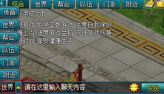 进入紫霞大唐真龙贰游戏,选择聊天框里面输入内容,然后按回车,或点击“发送”,可进行发言。 在发言框上面可选择聊天频道分类显示。 点击“刷子”可以删除现有的所有聊天记录。 点击下拉窗口,可以选择不同频道说话。