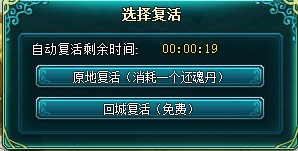 玩家在战斗中,如果一时不敌而牺牲了,可以采用原地复活(消耗还魂丹,没有还魂丹消耗5元宝)、技能复活(其他慈航门派的玩家使用起死回生复活,结婚/结拜对象使用技能义薄云天复活)、回城复活(免费,倒计时完结后,系统自动帮玩家选择回城复活)