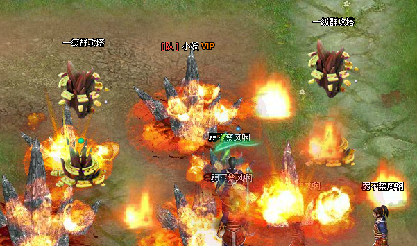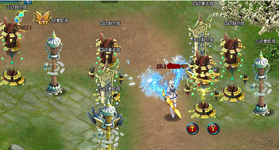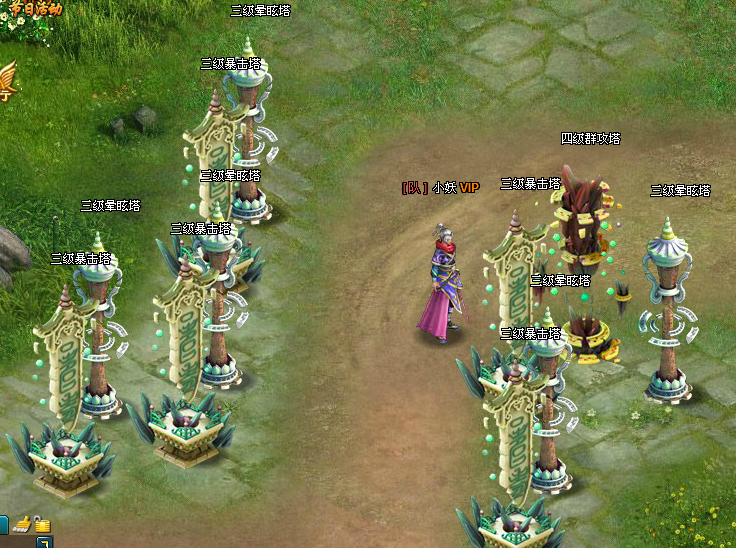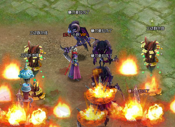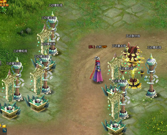 3、 群攻塔在塔群的最前方,尽可能的将小怪消灭在到达塔群核心攻击范围之前。