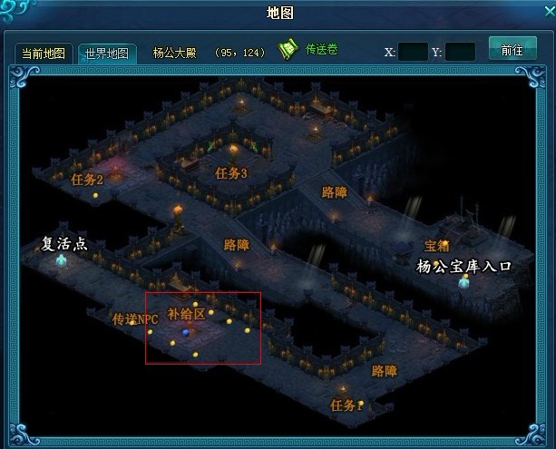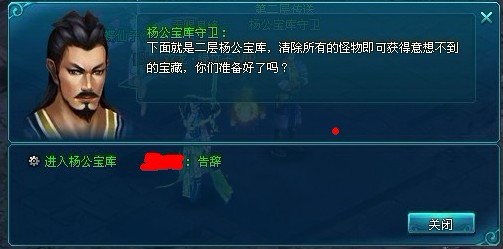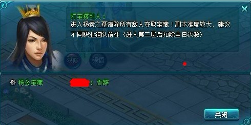 强烈建议组队进入:杨公宝藏副本奖励如此丰厚,难度自然也是比较大的,如果你不是对自己的实力有着超强的把握和自信,还是建议组个队吧,不然小心宝物没拿到,又丢了小命哦。组队的话,有两个建议:一是最好能够不同职业组队前往,因为杨公副本里面会有很多的怪物,每个怪物会有相克的职业,可以降低怪物的战斗力。不同职业互补战斗,更省时省力,这些相信大家都懂的;二是最好和有帮会、夫妻、结拜、师徒关系的队友一起组队进入,因为有了这些关系可以在补给区领取多倍暴击加成,提升战斗力哦。