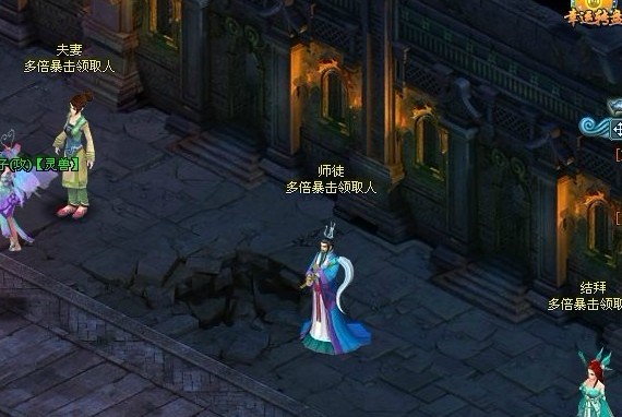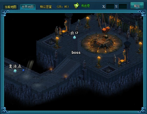 这一层为公共地图,所有进入副本的玩家都进入到一个地图中,并且会首先经过一个补给区。在补给区中,如果队伍中有同一帮会、夫妻、结拜、师徒,都可以在多倍暴击领取人处领取多倍暴击加成,进入战斗后点击特殊转盘将打出高伤害。