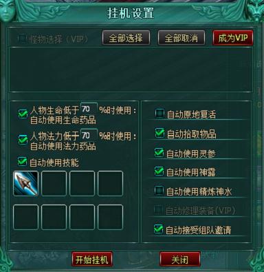 拥有VIP会员权限的玩家,还可以使用“自动修理装备”和“怪物选择”的功能。