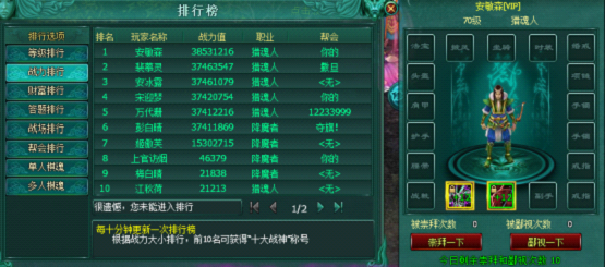 点击排行榜的内容,可以在右边显示当前点击玩家的信息,您还给其它玩家“投票” 选择“崇拜”和“鄙视”进行交互。