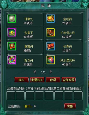 在任何一个有买卖功能的NPC处,都可以进行装备修理的操作。