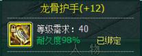 装备有耐久度属性。当耐久度为0,装备的属性效果将不会有效。所以,当耐久度下降到一定程度,一定要记得修理装备。修理需要花费一定钱币。耐久度不为100%的装备,鼠标停留在装备图标上,可以看到提示中的修理价格。