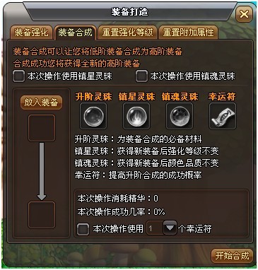 装备合成操作成功时装备的星级及属性会下降至最基础阶段,使用道具镇星灵珠和镇魂灵珠可以保证装备在升级的同时星级及属性不会下降,完整的保留在新装备上。