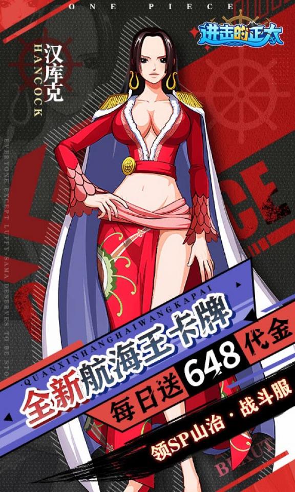 《进击的正太》是航海王放置类卡牌策略手游! 以人气动漫《海贼王》为世界观背景的卡牌策略手游,进游送女帝,登录游戏领山治、SP山治·战斗服!天天送648代金,可免费激活首充!签到即送,全英雄+1000连抽免费领!游戏高度还原了原作经典的海贼、海军、恶魔果实与大秘宝等设定,结合独特的卡牌养成与策略战斗玩法,创造出了层次丰富且乐趣十足的游戏体验。在游戏中,玩家能够自由招募心仪的英雄,探索伟大航线、解密失落的一百年的真相,寻找到传说中的one piece!