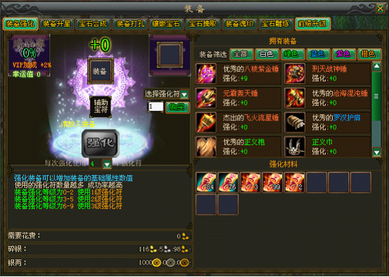 装备强化强化会大幅度的提升装备的基础属性的能力。(装备强化符在逆天龙脉中有掉落)