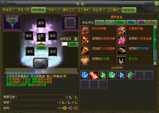 当然,也可以使用合成符来提高合成几率。每使用一个合成符,增加25%成功率。合成符分为低级、高级两种,分别对应1~4级宝石和1~9级宝石。