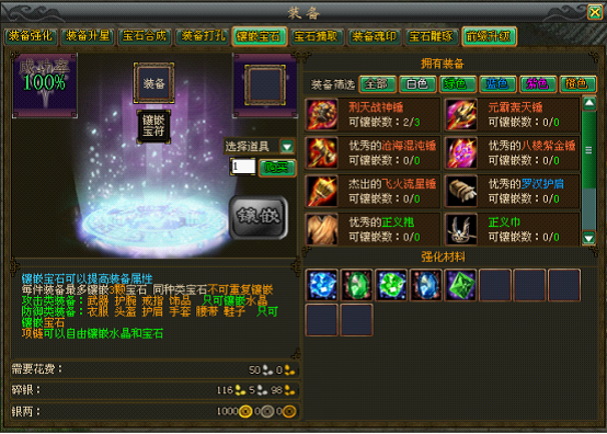 武器装备打造的一个最为重要和实力提升的就是各类宝石的镶嵌。各种宝石的来源当然也成为我们这些非RMB玩家所特别关注的信息了。当然RMB玩家的话不用多说,直接买就是,商城各等级宝石任君选购。而不过一般非RMB的话,在六派传奇中也是可以为自己弄一身宝石提升自己的实力,当然前提还是要努力,毕竟江湖险恶之地,闲且愈坚是不太可能的。