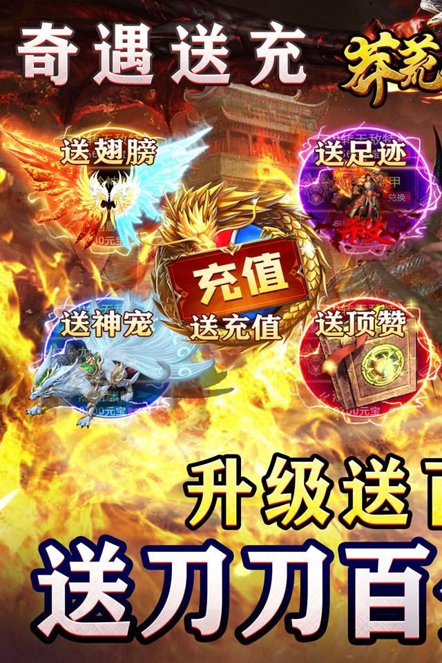 《莽荒传奇(送充超超超变)》是一款全新剑仙传奇手游,免费打金刷充福利版全新来袭。以斩妖除魔为背景,结合了神器、 羽翼、神宠、足迹、幻兽、御兽光环等玩法,剧情丰富有搞头,技能特效有讲究,之间冒险纵横,热血的战斗为你带来超爽的 体验!炫丽的技能秀翻全场,精准的打击斗智斗勇。在玩法方面,以打金、升级、爆装、抢沙等传奇核心玩法为主。快快加入 吧与兄弟们征战吧,成就神界最强战士!变身传奇修士,一起渡劫除妖伏魔!顶赞免费,冲级送万元真充,奇遇BOSS, 副本地下城挑战。开局刀速拉满,全屏爆光柱,送翅膀、送神宠、送足迹,无套路,爽到爆的超变,嗨到起飞的体验!上线送神器, 每日签到领海量豪礼,超值活