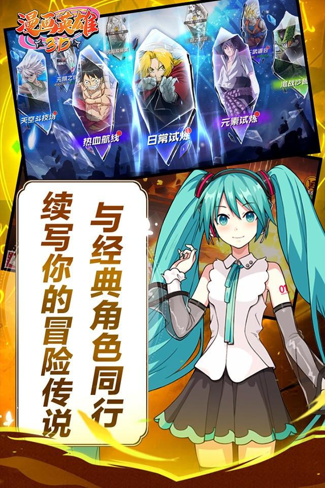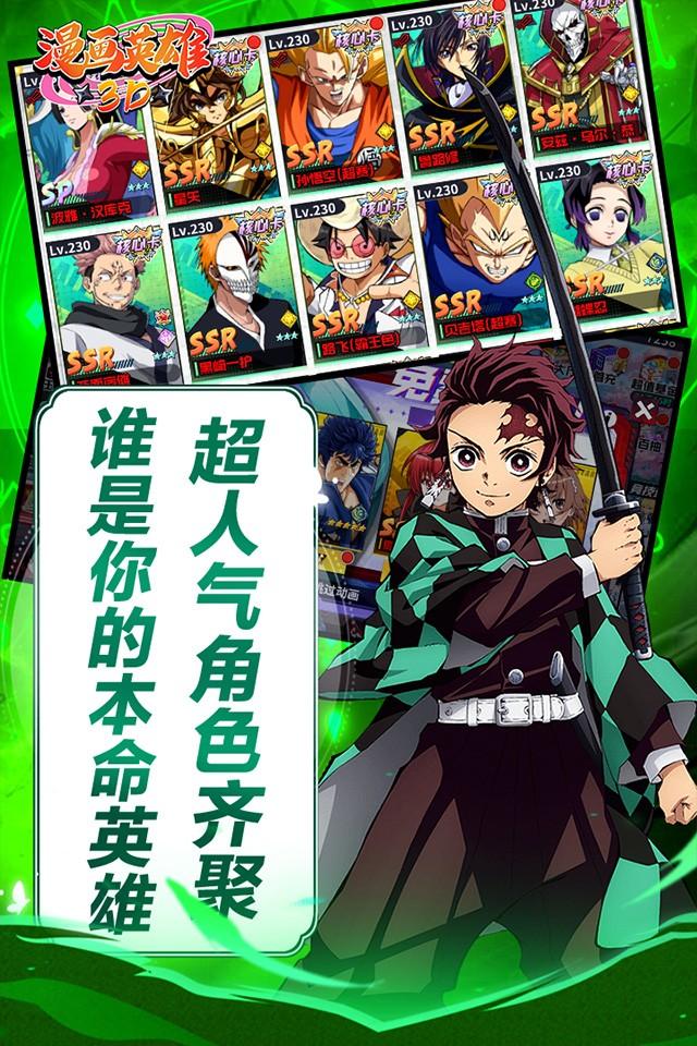 《漫画英雄3D》(0.05折次元乱斗)是一款颠覆传统的横版卡牌手游,集结《海贼王》《鬼灭之刃》《火影忍者》《进击的巨人》《死神》等超多顶流动漫的经典角色,打破次元壁垒,打造史诗级跨作品联动战场!在这里,路飞与佐助并肩作战,炭治郎携手祢豆子对抗巨人,黑崎一护与五条悟展开灵力对决……所有不可能的梦幻组合,皆由你亲手缔造!