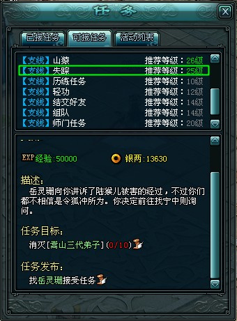 《梦江湖》中,当你出生后便能领取到主线任务,主线任务将伴随你的江湖之旅。你可通过主线任务获得各阶装备,技能,银两,经验等等,是游戏的主要升级方式。
