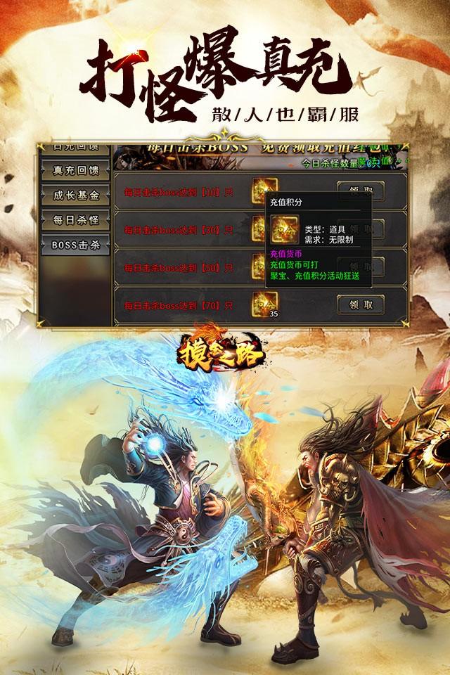 《摸金之路》是一款以传奇为题材的角色扮演手游。上线库库一顿领:七日登录,福利礼包,充值红包更有豪华福利待您探索!打怪就可以爆真充,时间等于一切!每日打怪在线就赠送充值积分,无需花一毛钱!首充、特权玩家可获取大量权限,快人一步!零氪通关,散人称王,真充嗷嗷送,散人也能逆袭当大佬!玩法简单直接,绝不内耗玩家!