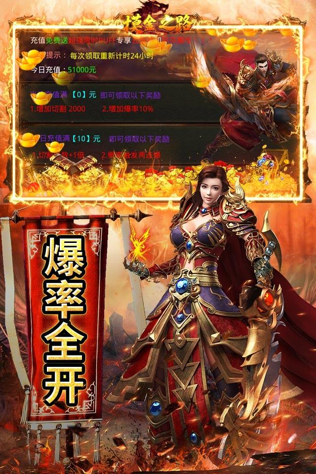 摸金之路(1折永久购)携刀刀冰冻、刀刀带毒、刀刀切割、永久一折革新上线! 上线、签到就送VIP点(激活满V)、传奇币(激活顶赞),648礼包新人0.1折购 开局送全套终极技能,全民免费送刀刀冰冻,人人享刀刀带毒、刀刀切割。自由度极高,随时集结人物在游戏中展开一场激烈的热血厮杀!拥有10倍暴击率,自动挂机,内置自动战斗和战斗/保护设置,爆点升级,激烈的战斗让你震撼全场! 自由交易,各种神器、全能神体倍攻、极限满攻速,任你自由驰骋,带给你全新的传奇体验!