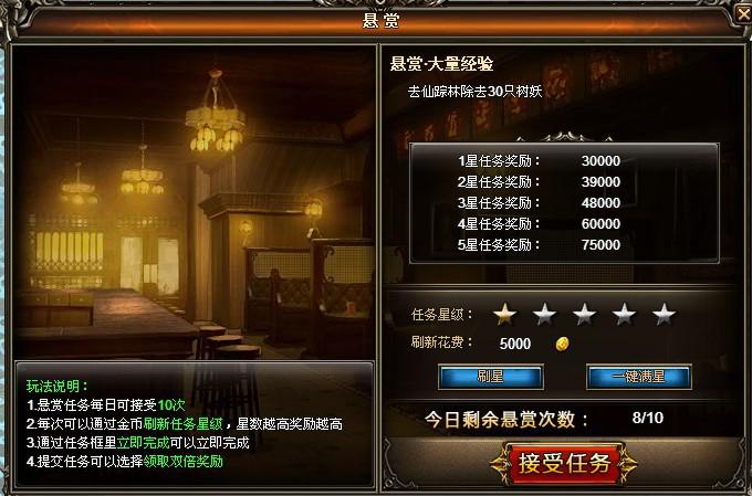 2、每次可以通过金币刷新任务星级,也可以通知钻石一键满星,星数越高,奖励越高