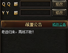 战盟信息里可了解整个战盟情况,为方便战盟活动,盟主可自行修改战盟QQ、YY群信息及战盟公告。
