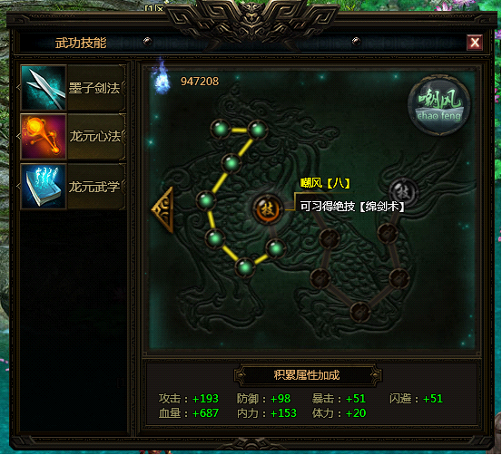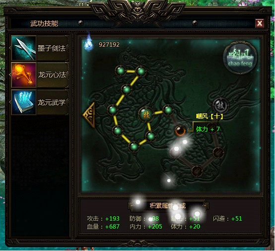 一共9张星图,每图对应九子一名,分布15-25个星位。其中大部分是属性星位,少部分是技能星位,可用于开启或龙元武学中的技能。