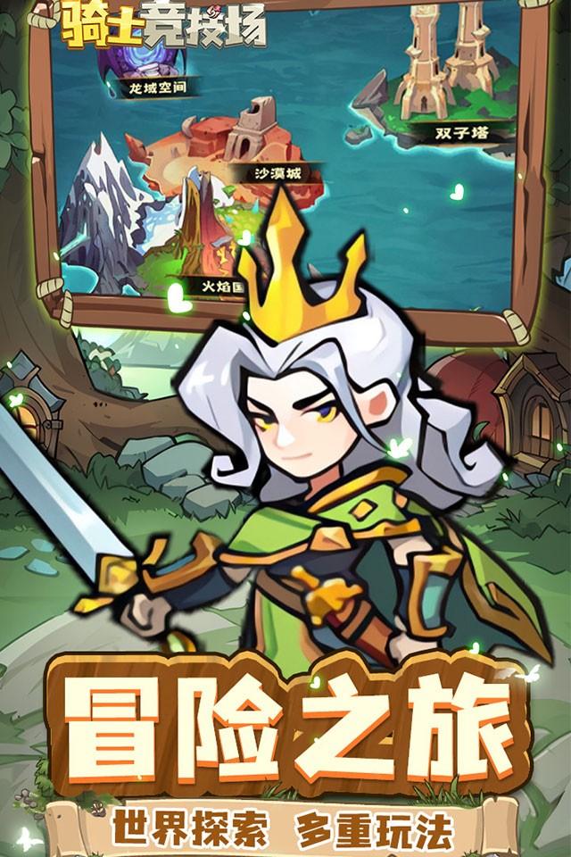 《骑士竞技场》是一款玩法轻松的童话休闲类开箱手游,基于童话故事构建了王国世界,玩家在游戏内扮演童话主角打倒魔王BOSS,拯救汪星人与其他动物们。并在其过程中结识不同类型的伙伴,与伙伴们一起在童话王国世界里开启冒险之旅。