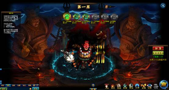 3、目前镇妖塔一共有6层,每层收录5个妖魔boss,每打败一个即可获得一份奖励:真元以及装备升级卷轴。