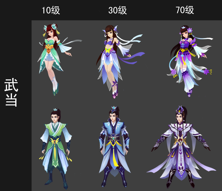 在《蜀神》里,我们拒绝一成不变的角色造型!随着在游戏中的等级成长:10级、30级、70级,角色在造型上也是与时俱进!下面我们一起来看看各个职业不同的造型。