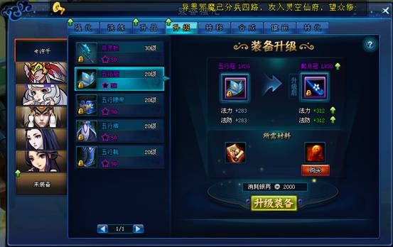 2、装备升级:消耗资源—装备升级卷轴+玄天石