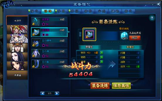 3、装备洗炼:消耗资源—洗炼石(在副本、关卡中投放)