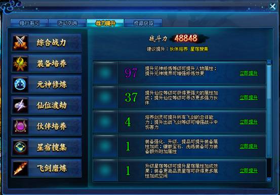 战力提升——引导玩家准确参与的获得战力提升的玩法。