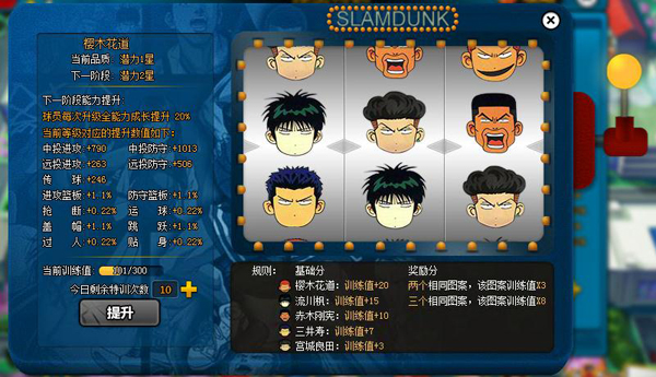 选择完特训档次后,进行特训时,我们会在拉霸机游戏中进行,拉中相同的球员头像越多,