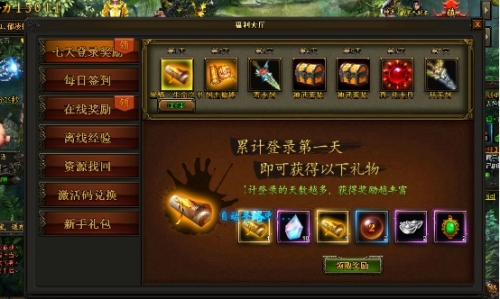 在福利大厅里有七日登陆和每日签到等给玩家的福利,从技能书到转生必须的化龙丹都有,玩家的所有被动技能书都可以通过这里获取,奖励非常丰厚。