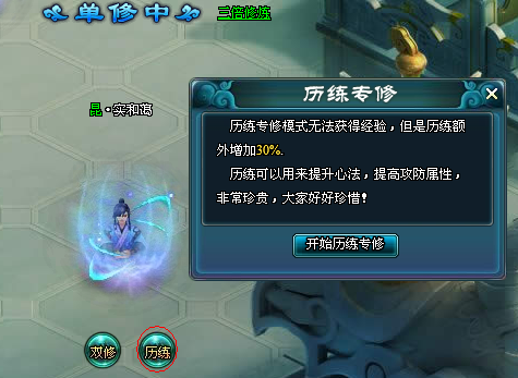 选择历练专修模式不会获得经验,但是可以额外增加30%历练。