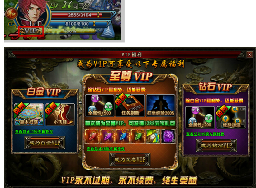 在屏幕的左上角,自己的头像下边有个VIP的按钮,点击进入VIP界面: