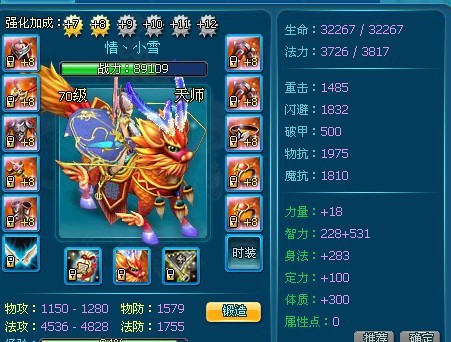 高战力=坐骑+装备+法宝+镶嵌(提色)+绑定(精炼强化)