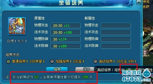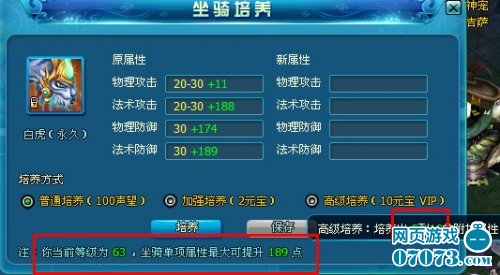每培养一次的话需要的是100的声望值,这时就会发现之前一直没多大作用的声望值终于可以派上用场了,当然你也可以使用元宝来培养,培养出来好 属性的几率当然会高点,详细的话可以点击各种培养查看,当然个人推荐的话当然使用声望培养划算了,但前提必要是你的声望值要非常充裕。