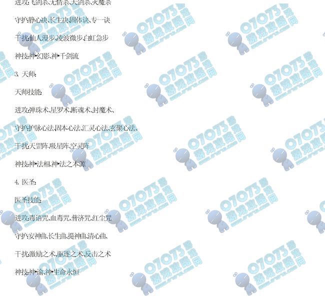 天之刃共有四大职业,分别为:战神、剑仙、医圣、天师。