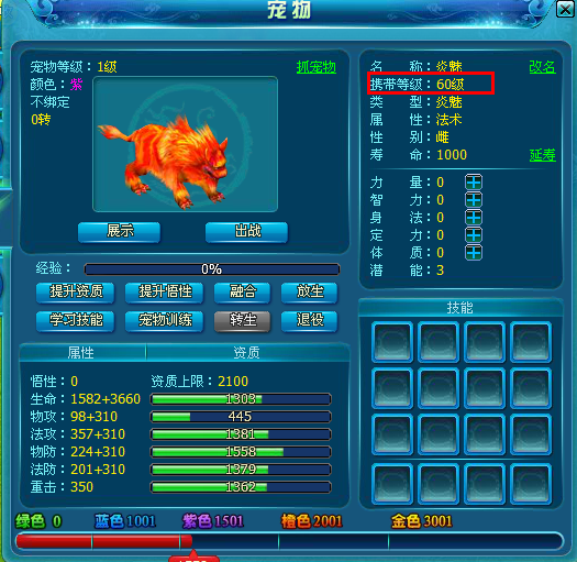 在之前获得2100资质的宠物携带的等级只需要5级,换句话说,在洗资质的时候只需要用初级的洗灵丹就可以了,但在野外抓获的宠物,一般都需要使用中级或高级的洗灵丹。