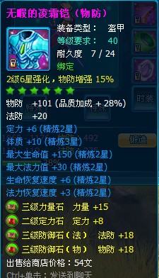 在装备选取上以防具来说的话也还是本着平衡的原则,6件的防具来说可以挑选2-3的物防或法防的防具,总之在角色总防御上可达到差不多物防和法防相对平衡的效果就基本没问题的了,攻击方面就别平衡了 果断物攻,没办法,它就是一个以物理攻击为主的杀人武器。