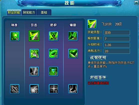 为什么说剑仙是一个全面的职业呢?其实在它的技能方面我们也不难看出了,剑仙拥有着每个方面都有照顾的等级技能,无论在血量,攻击,防御,移动速度,和暴击都有相关技能加以辅助,简直是如虎添翼。