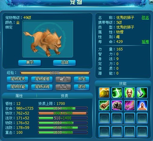 3、除了提升资质,要将宠物提升等级,还是远远不够的,这里就还需要通过提升悟性来改变宠物的颜色。悟性最高是可以提升15,每提升一点悟性是可以提升一定的资质的。