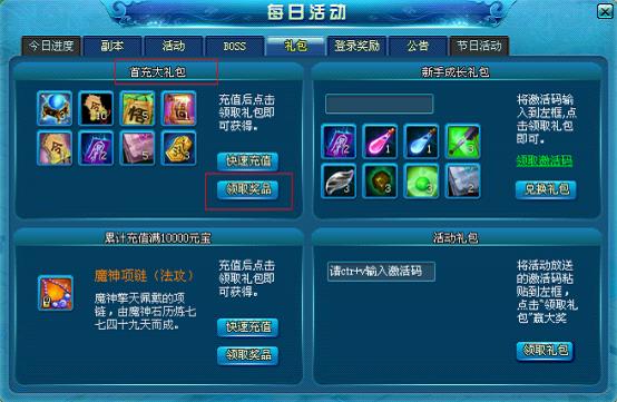 游戏限制,每个账号在全区只能获得一次首充奖励,玩家充值成功后,领取首充礼包的方法,可以查看下面教程。
